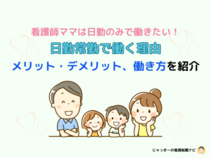 ただし、日勤常勤やパートで働くのに比べて、子育て中のママナースが夜勤をするのは、ハードルが高いです。